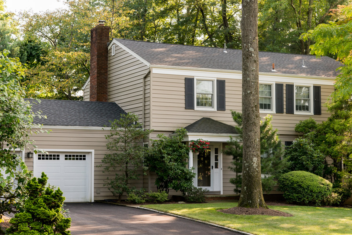 CertainTeed Single 7” CedarBoards in Natural Clay simulate real Cedar Clapboards and give this house a traditionally painted colonial look without the maintenance!